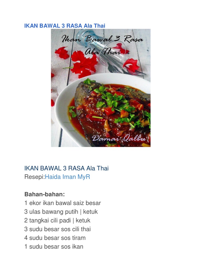 Resepi Ikan Bawal Putih Malam tadi saya juga memasak sos pomfret putih yang dimasak mengikut resipi yang dikongsi oleh YatieApa yang dirasakan terlalu sering dihadapi oleh isteri. 1 buah jeruk nipis saya pakai cuka 2 sdm Garam 1 ltr air untuk kuah sup Bumbu halus Daun sup dan daun bawang dihiris. 160 resipi yang mudah dan sedap untuk serai halia kukus daripada komuniti memasak terbesar di dunia.
